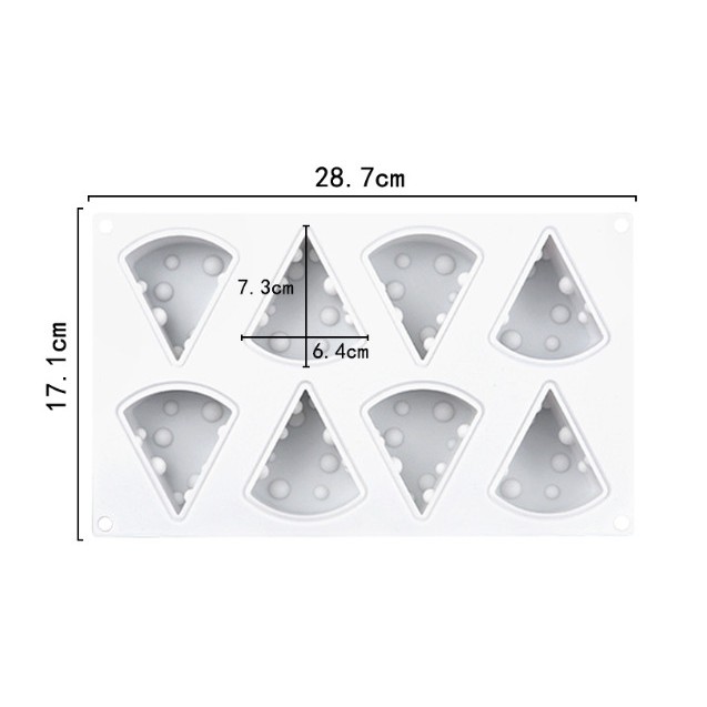 - Khuôn phomat 8 viên : 28,7 * 17,1 * 3,4cm kích thước từng viên 7,3 * 6,4 * 3,2cm
