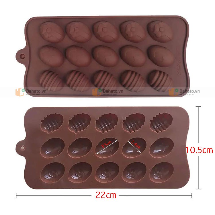 Khuôn silicon socola 15 nửa quả trứng phục sinh 3.5x2.4cm- Kích thước khuôn: Dài 22cm x Rộng 10.5cm x Cao 1.5cm