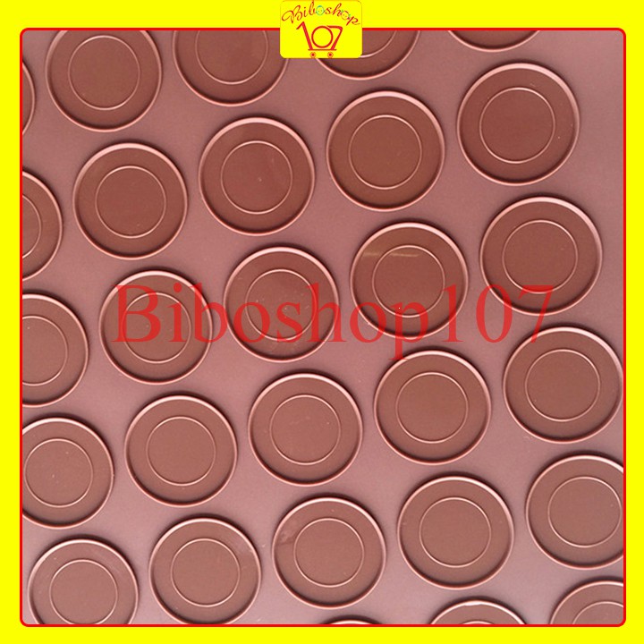 Một chiếc bánh macaron đẹp là một chiếc macaron với bề mặt láng mịn, chân bánh xòe đều. Để chân bánh xòe đều thì trong quá trình nặn bột ra tấm lót bạn phải canh thật chuẩn. Hiện nay Shop có bán tấm silicon lót bánh macaron 30 vòng nhằm hỗ trợ bạn làm đẹp chiếc bánh dễ dàng hơn rất nhiều.Tấm lót macaron 48 vòng làm bằng chất liệu silicon dễ chùi rửa, bền, chịu nhiệt tốt đến 230°C an toàn cho người sử dụng.