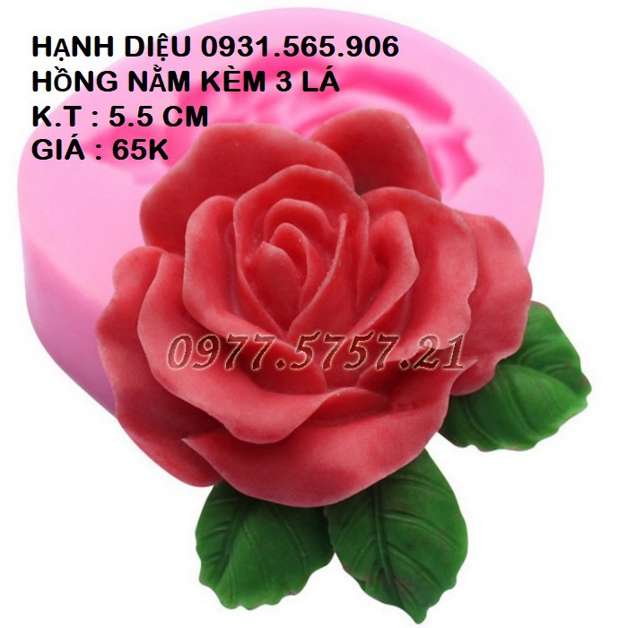 Khuôn Silicone Hoa Hồng Nằm Kèm 3 Lá