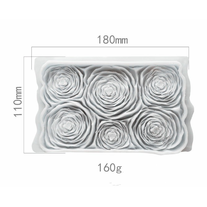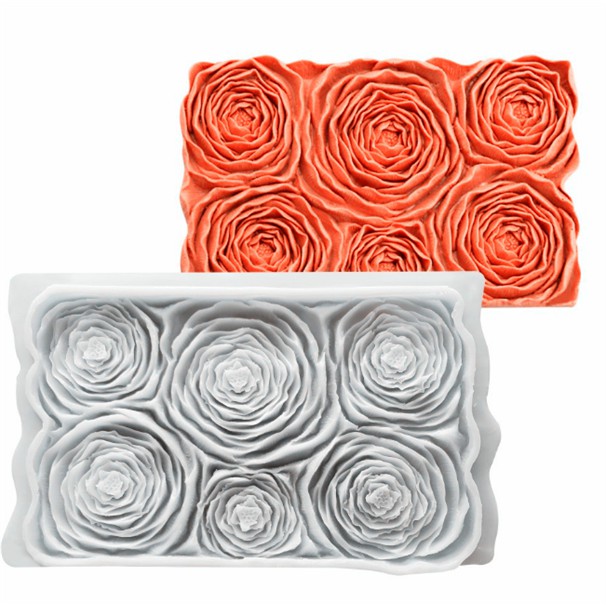 Khuôn Silicone Hoa Nổi 4D Viền Hoa Hồng 6 Bông
