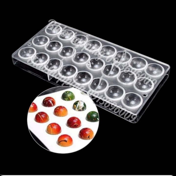 Giới thiệu Khuôn sô cô la socola nhựa cứng nửa tròn 2068 nhiều kích cỡ