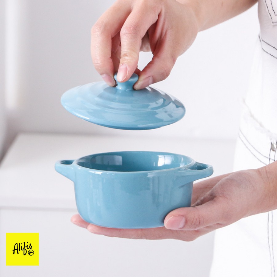 Chén sứ ăn dặm cho bé, cốc sứ ramekin, khuôn sứ cao cấp có nắp dùng trong lò nướng Alifis