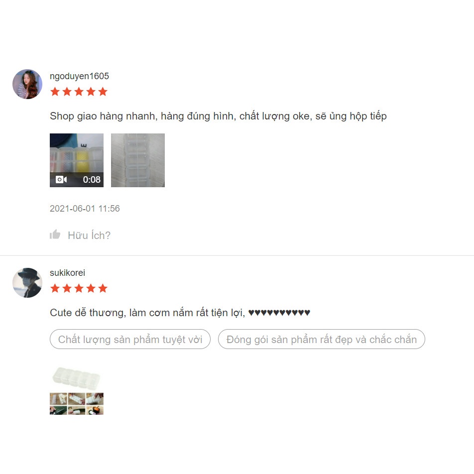 - Số lượng: 1 cái làm được 5 nắm cơm.