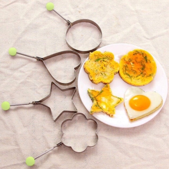 ⭕ Với bộ dụng cụ này, món trứng ốp của bạn sẽ tuyệt đẹp. Có hình trái tim, hình tròn, hình bông hoa, hình ngôi sao. Sử dụng rất đơn giản, bạn chỉ cần cho khuôn lên chảo, cho dầu vào, rồi đập trứng vô là xong. Cùng 1 chiếc chảo, bạn có thể ốp được 4 quả trứng cùng lúc. Thật tiện phải ko nào?!