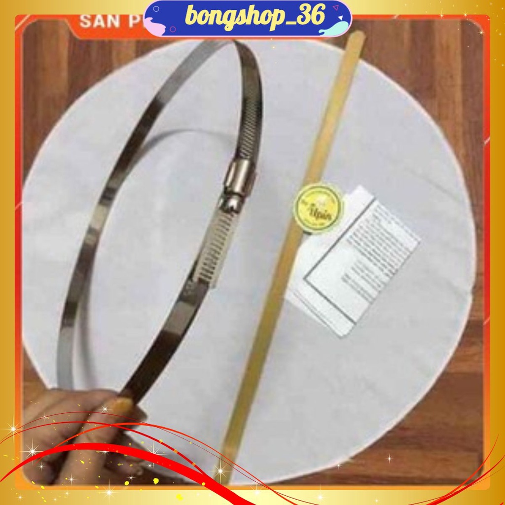 - 1 đai inox size nồi (23-31cm) hoặc (19-25cm) đổ lại. Đai xiết chỉ thiết kế vặn chặt lại hoặc nới lỏng ra chứ để tháo tung hẳn ra phải dùng lực vặn mạnh mới tháo hẳn ra được. khách hàng lưu ý mua về vặn đai thu lại cho gần bằng kích thước nồi nhà mình rồi hãy lồng vào nồi để xiết căng vải. khi làm xong thì lại lấy tua vít nới nhẹ ra để vệ sinh chứ không cần tháo tung ra, để lần sau làm không cần vặn đai nhiều mỏi tay ạ :)