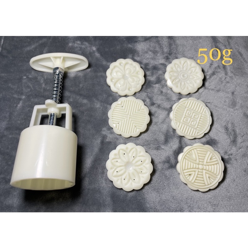 Bộ khuôn gồm 1 nhấn lò xo và 6 mặt hoa văn thay thếKhuôn 50g Đóng bánh 50-60g