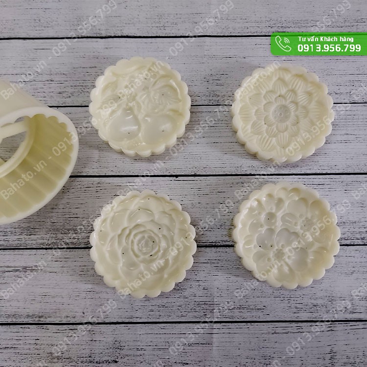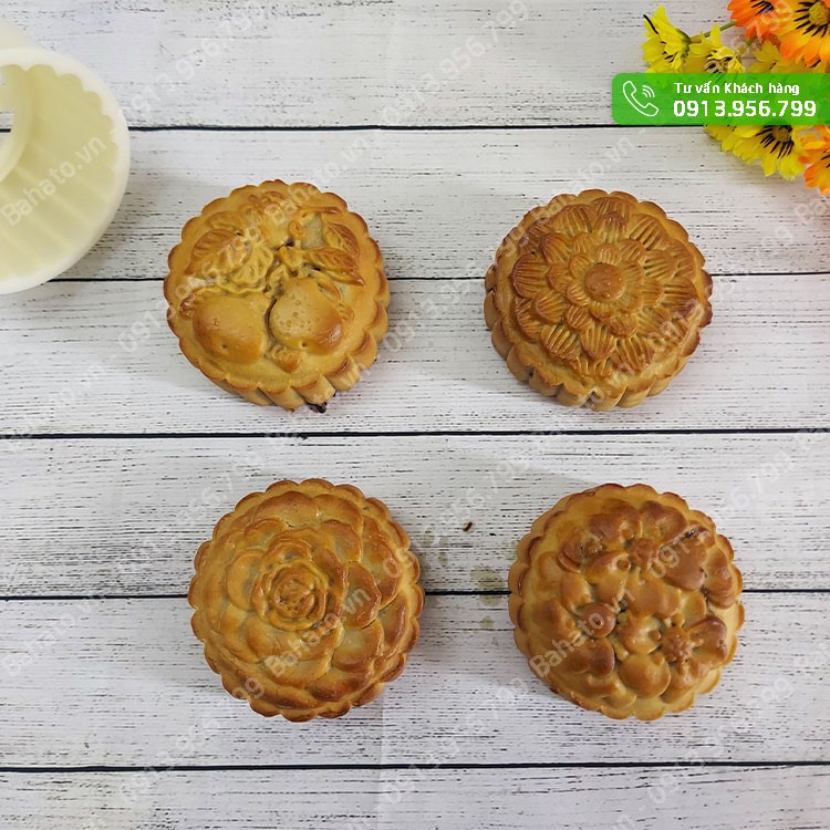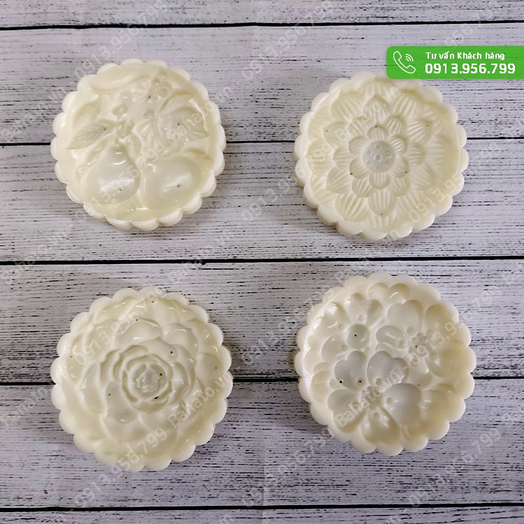 Giới thiệu Khuôn trung thu lò xo 200g 4 mặt 2 trái lê, hoa mận, sen nở