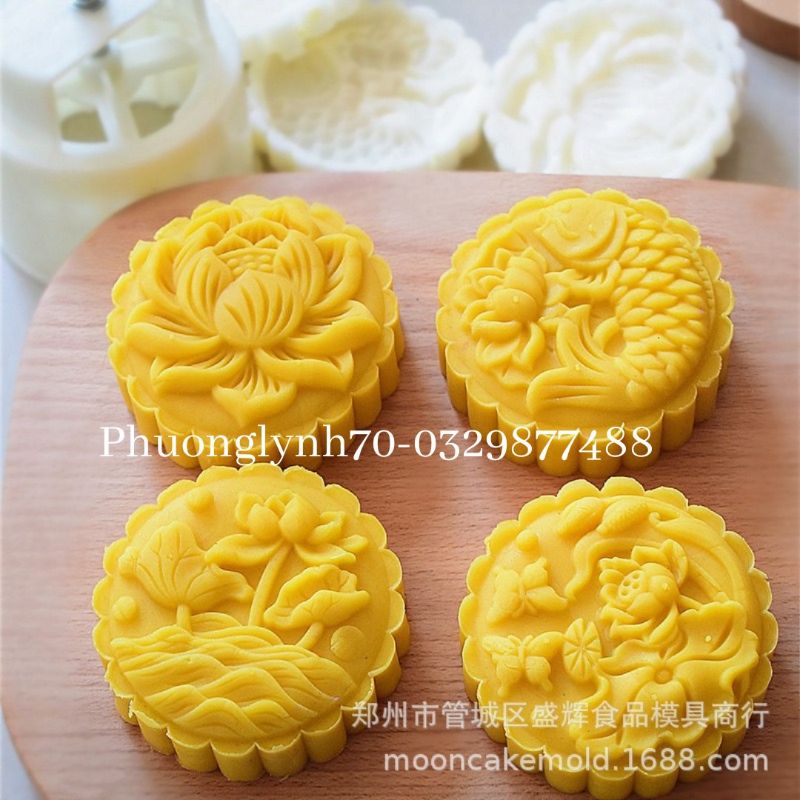 Giới thiệu Khuôn trung thu lò xo 2021 SEN CÁ ,150g 4 mặt 1 nhấn
