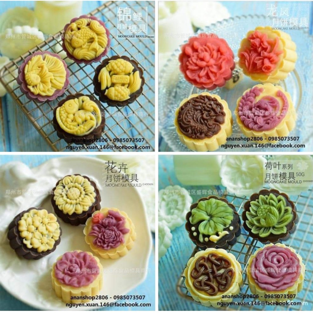 Khuôn trung thu lò xo 50gr 2020 (Nhiều mẫu) : bộ gồm nhấn + mặt khuônKhuôn đóng bánh 50gr tối đa 65gr
