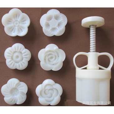 Khuôn trung thu lò xo 50gr - 75gr 6 mặt hoa nổi 3D