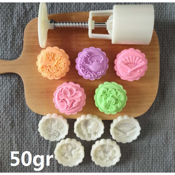 Bộ khuôn trung thu lò xo 50gr (nhiều mẫu)Khuôn đóng bánh 50-65gr