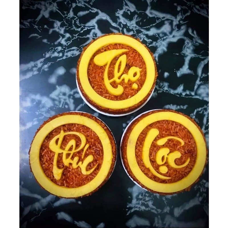 khuôn xôi , khuôn làm bánh Phúc Lộc Thọ 5 chi tiết bằng nhựa nguyên sinh an toàn cho sức khỏ1 BỘ GỒM 5 CHI TIẾT : 1 KHUÔN TRÒN + 3 MẶT HÌNH CHỮ PHÚC - LỘC - THỌ + 1 ĐÁY