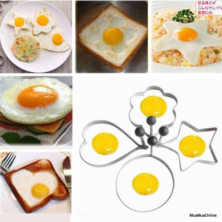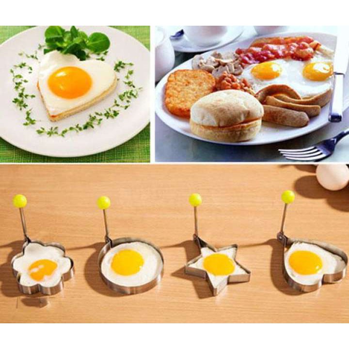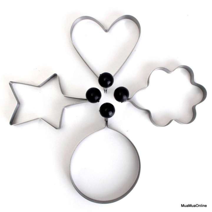 Khuôn chiên trứng, cắt tạo hình bánh là thiết kế độc đáo giúp bạn sáng tạo cho gia đình nhiều món ăn trông ngon và đẹp mắt hơn.Khuôn có nhiều tạo hình dễ thương như: ngôi sao, trái tim, hình tròn, hoa… hô biến món ăn đơn điệu trở nên hấp dẫn vô cùng.