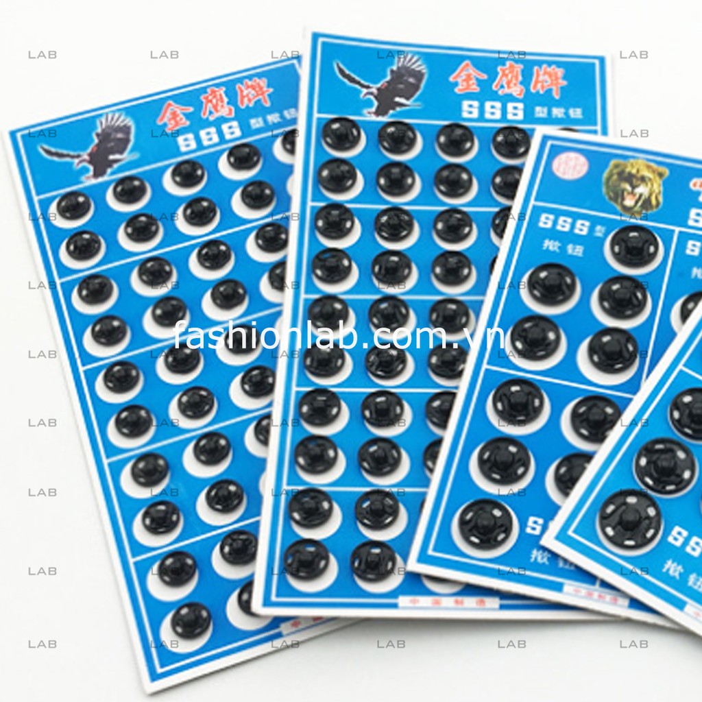 Khuy bấm 7 ,8.5, 10, 16, 21mm, kim loại nhiều cỡ (vỉ )