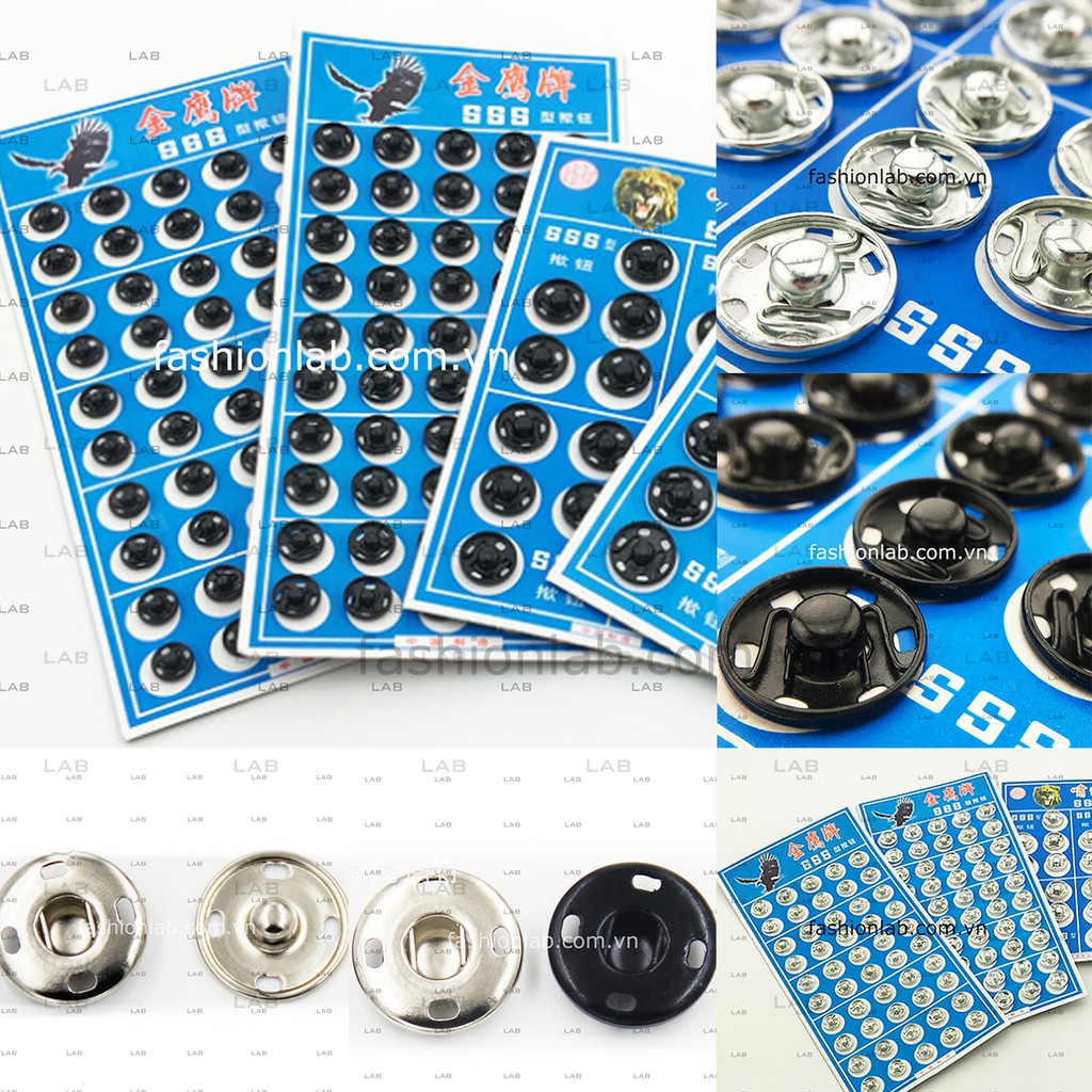 Giới thiệu Khuy bấm 7 ,8.5, 10, 16, 21mm, kim loại nhiều cỡ (vỉ )
