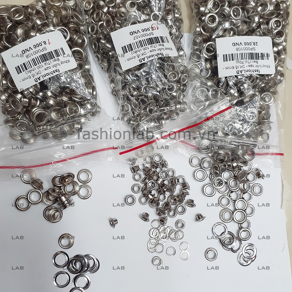 Sở thích & Sưu tầm > Dụng Cụ May Vá || Khuy luồn oze kim loại 4,5,6,8,10mm (túi)Còn hàng