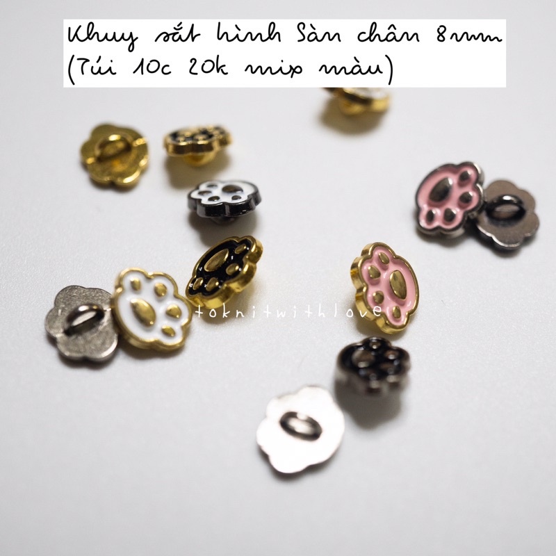 Sở thích & Sưu tầm > Dụng Cụ May Vá || Khuy sắt hình bàn chân size 8mm (1 túi 10c mix màu)Còn hàng