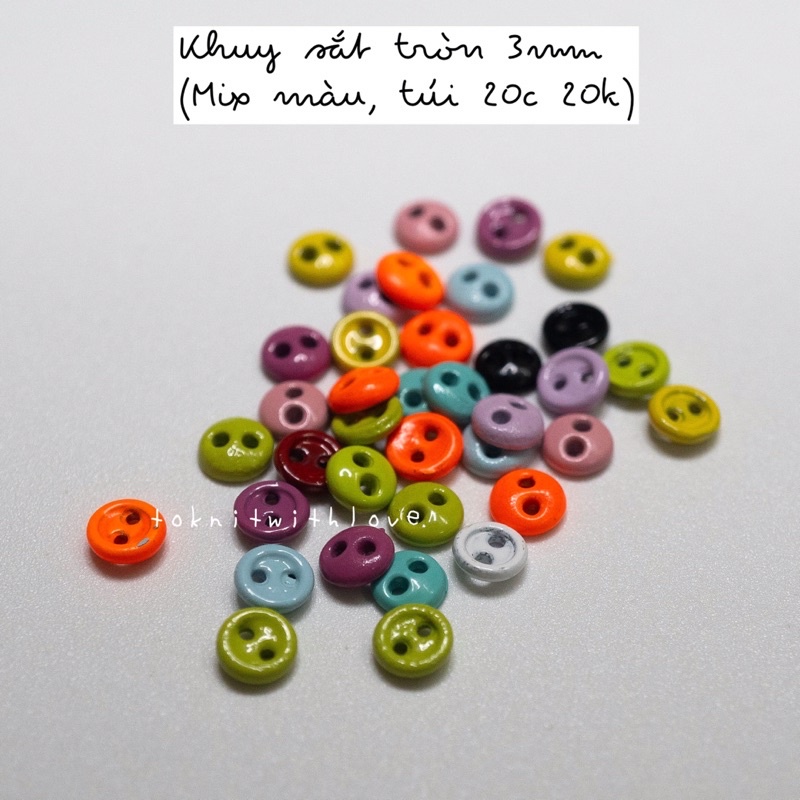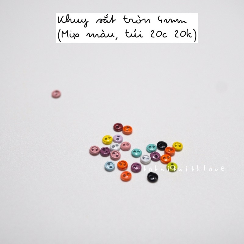 Sở thích & Sưu tầm > Dụng Cụ May Vá || Khuy sắt tròn mini size 3mm, 4mm (1 túi 20c 20k mix màu)Còn hàng