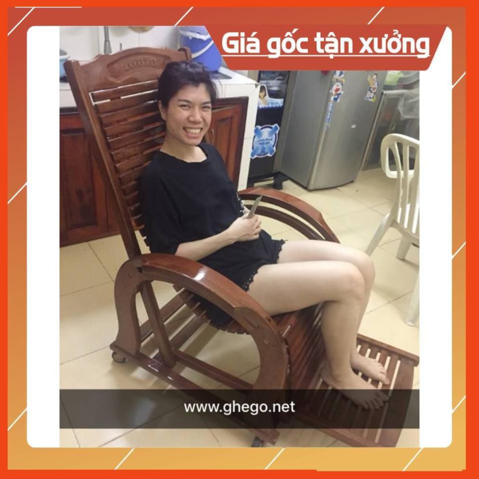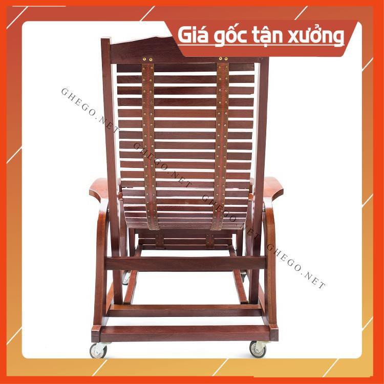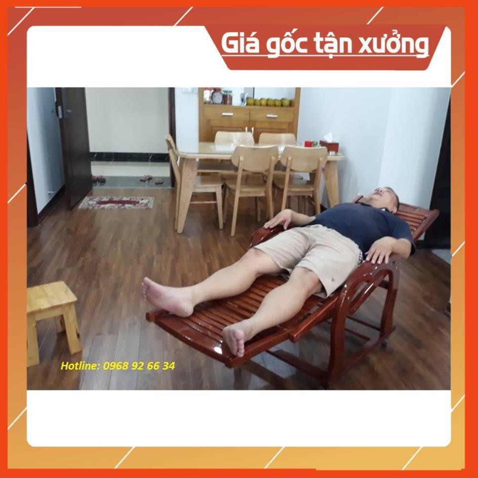 [Khuyến Mãi Sốc] Ghế thư giãn gỗ sồi, Ghế lười gỗ sơn PU màu cánh gián cao cấp