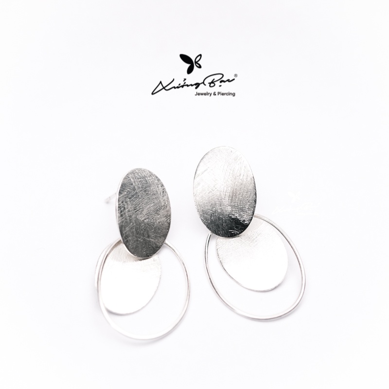 Giới thiệu Khuyên tai Xưởng Bạc thiết kế đeo tai. Bông tai bạc 925, khuyên nữ tính họa tiết hai hình tròn lồng nhau mặt nhám KDD380