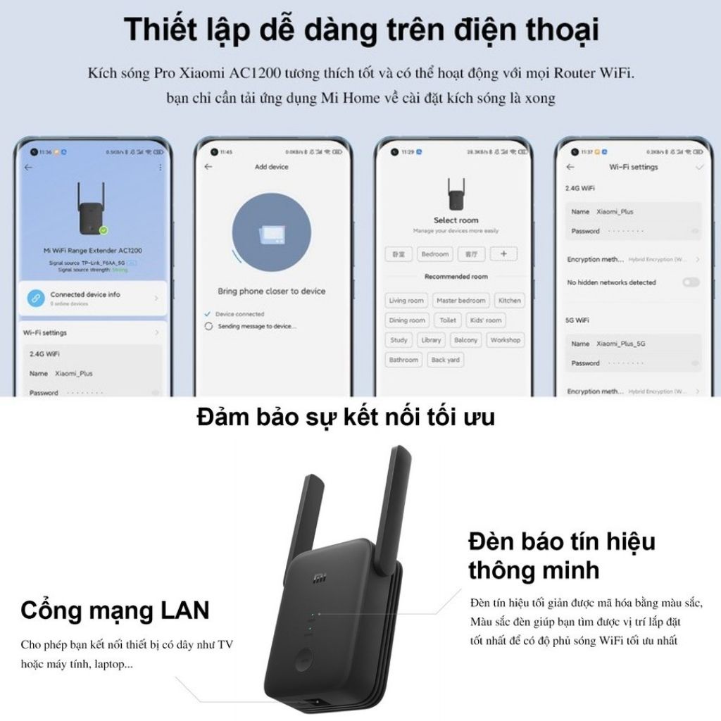 kích sóng wifi xiaomi ac1200 Bộ Mở Rộng Sóng Wifi tăng cường mạng Wifi cực mạnh 5Ghz range extender pro 2 băng tần✅ ƯU ĐIỂM NỔI BẬT Kích sóng wifi xiaomi ac1200 :