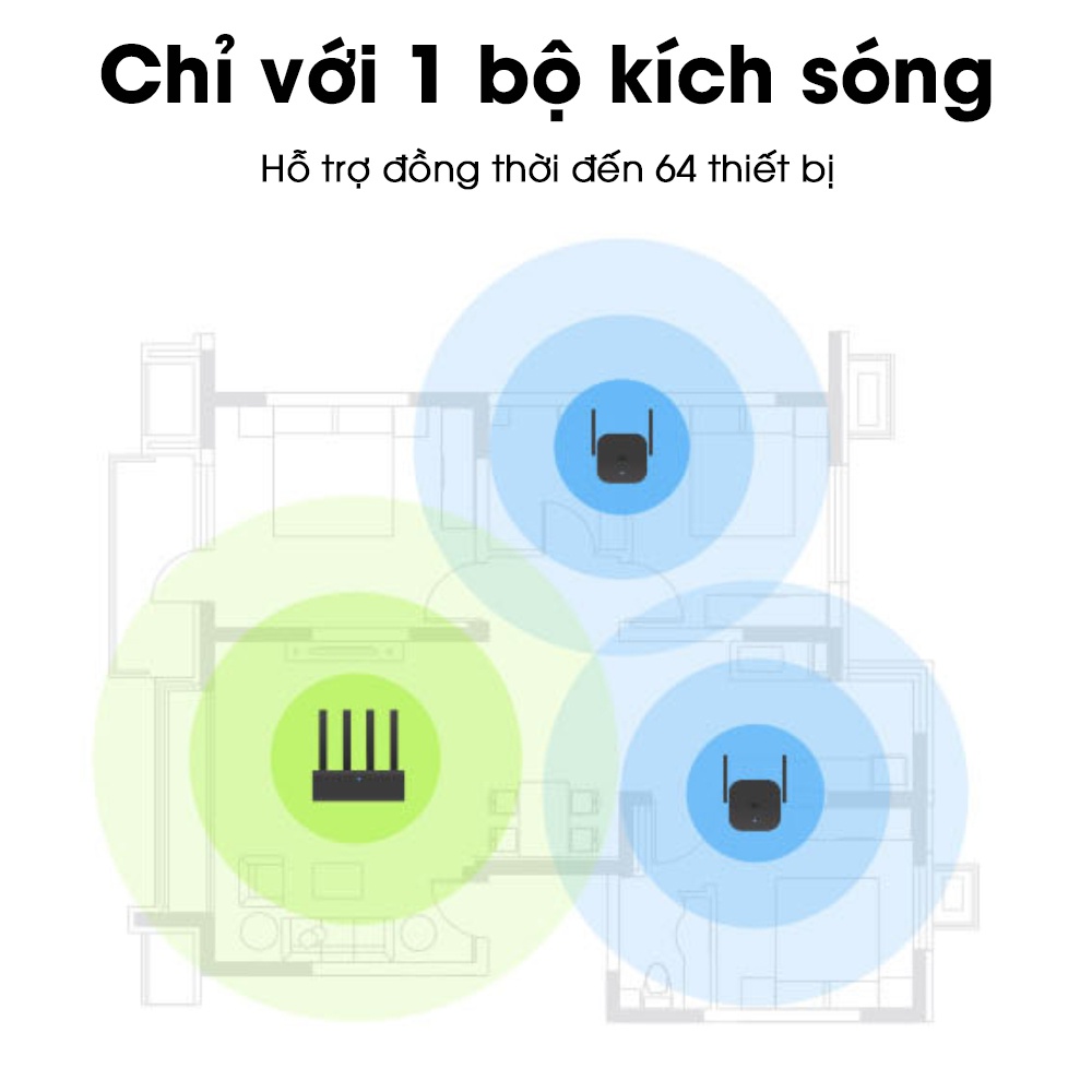 Bộ kích sóng Mi Repeater Pro có chức năng mở rộng vùng phủ sóng Wifi (không phải kéo tín hiệu Internet gốc từ yếu thành mạnh). Khi có thiết bị kích sóng, người dùng có thể thu được wifi ở khoảng cách xa hơn so với khả năng phát sóng của bộ phát Wifi chính