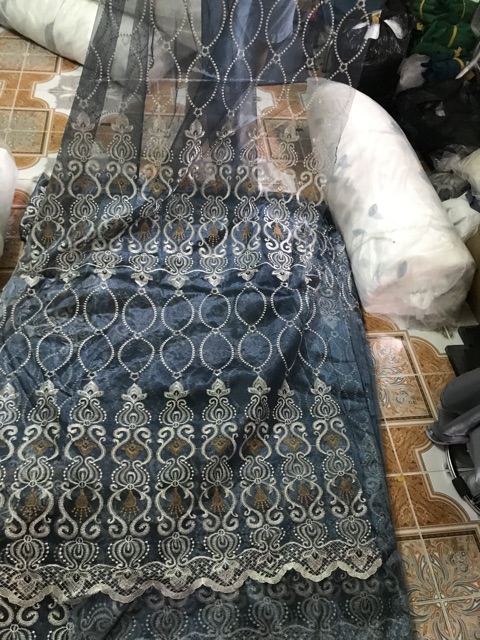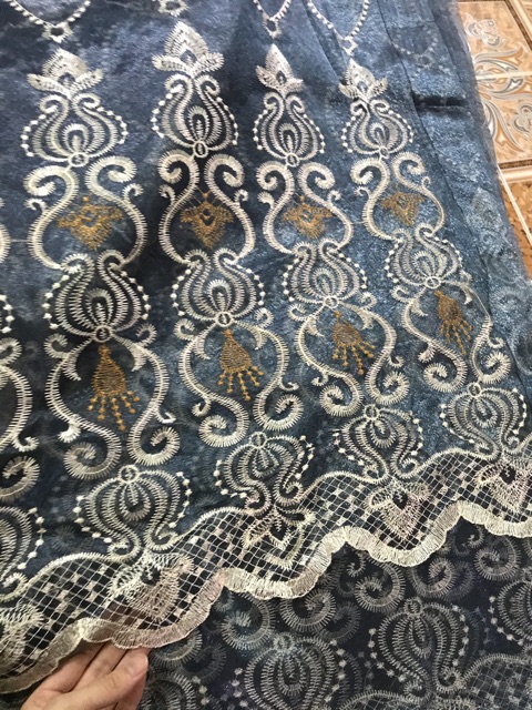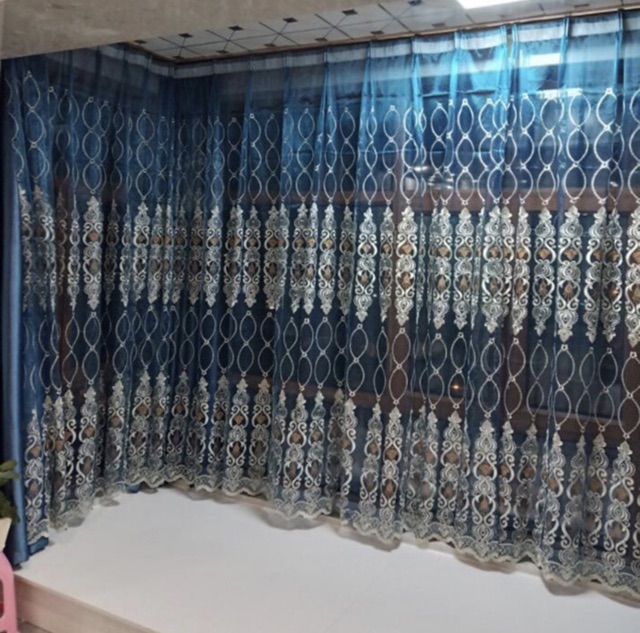 Nhà cửa & Đời sống > Trang trí nhà cửa > Rèm cửa, màn che || Kích Thước Lớn_Rèm Voan Xanh Thêu Phong Cách Cổ Điển Mã S09Còn hàng