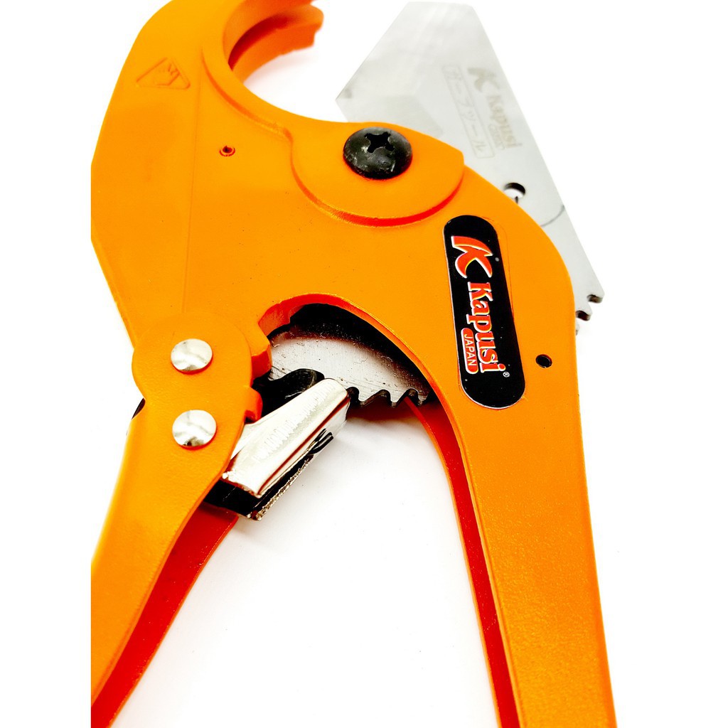 Việc cắt ống nhựa PVC là công việc thường xuyên của những người thợ nước. Chiếc kéo cắt ống nhựa PVC KAPUSI là một dụng cụ cắt ống rất sắc bén và chỉ cần một tay là thao tác được.Lưỡi kéo được sản xuất từ thép hợp kim nhômcao cấp tạo sự cứng rắn đến độ cứng 61, chống cong vênh và gỉ sét; đồng thời thép hợp kim nhôm với khả năng mài mỏng đến 0.01mm sẽ tăng độ sắc bén để cắt các loại ống nhựa.