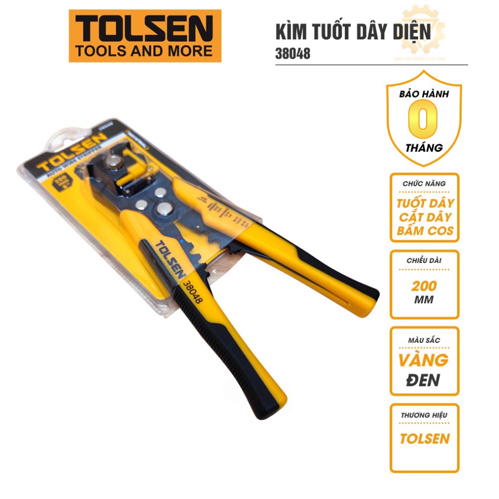 Nhà cửa & Đời sống > Dụng cụ & Thiết bị tiện ích > Dụng cụ > Kìm || Kìm tuốt dây điện TOLSEN 38048 đen vàngCòn hàng