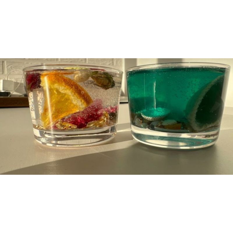 - Trang trí: Sáp Gel rất mềm nên dán cố định phụ kiện trang trí ở thành ly rồi mới đổ nến.