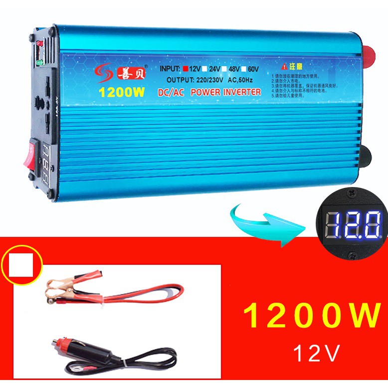Giới thiệu Bộ kich điện 12v lên 220v 1200w- CÓ LED báo Volt