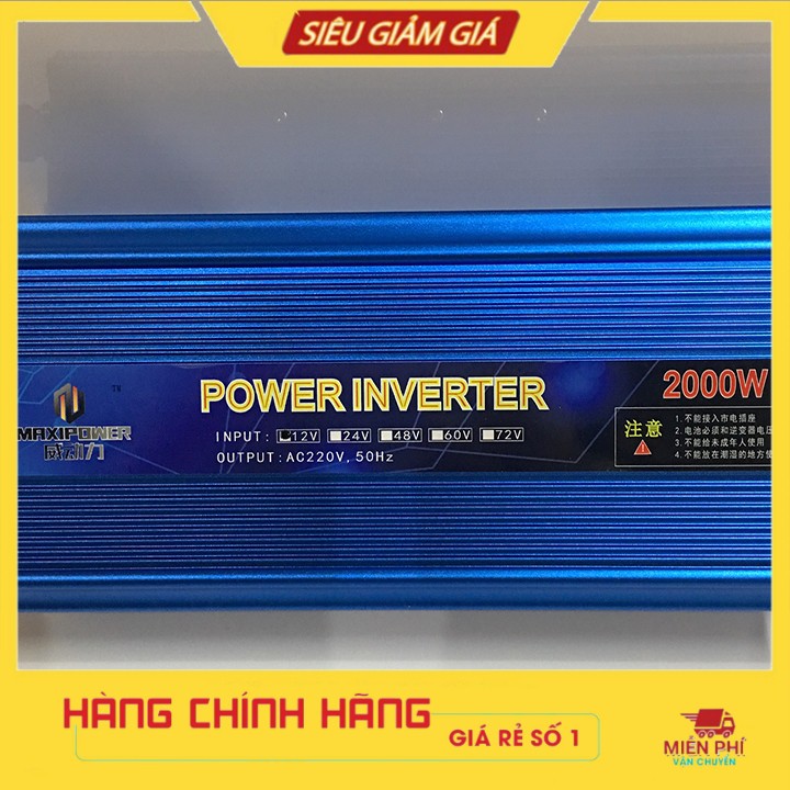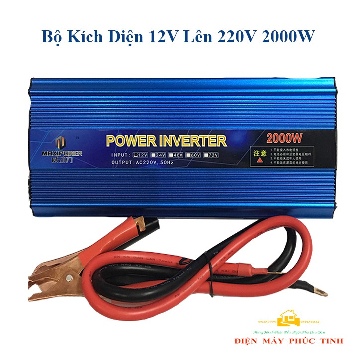 - Máy Thực Phẩm xin giới thiệu sản phẩm Bộ kích điện 12V - 220V - 2000W MAXIPOWER chức năng dùng đổi nguồn từ bình ắc quy 12V sang 220V sử dụng cho các thiết bị điện trong gia đình.THÔNG TIN SẢN PHẨM