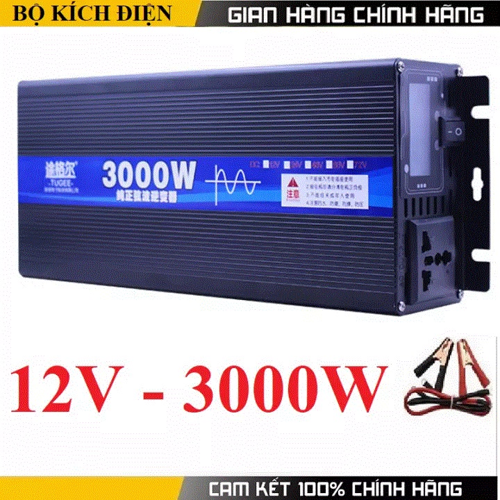 Bộ đổi nguồn 12v 220v công suất 3000w - Tặng kèm đôi kẹpShop xin giới thiệu sản phẩm Bộ kích sin chuẩn 12V sang 220V chức năng dùng đổi nguồn từ bình ắc quy 12V sang 220V sử dụng cho các thiết bị điện trong gia đình. Bộ đổi nguồn sine chuẩn giúp nâng cao tuổi thọ của các thiết bị điện trong quá trình sử dụng.