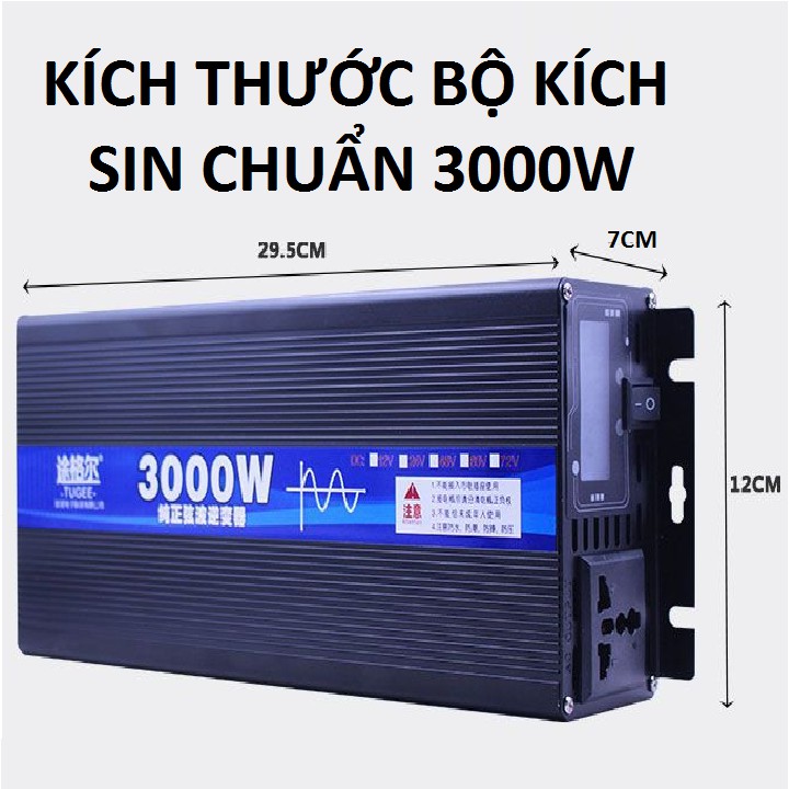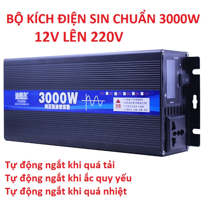 Kích điện 12v lên 220v 3000w sin chuẩn - Đổi nguồn DC 12V lên 220V công suất 3000W sin chuẩn - Hàng nội địa trung quốc.