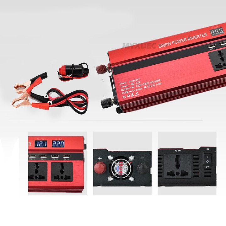 BỘ KÍCH ĐIỆN INVERTER CAMAER 2000W - 4 Ổ CẮM USP - 3 Ổ CẮM AC - CAO CẤP