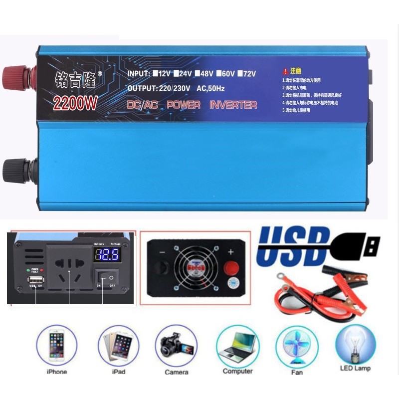 Chuyển đổi điện từ 12V sang 220V sử dụng cho chiếu sáng đèn, quạt, tivi, tủ lạnh , máy bơm nước, nồi cơm điện, bếp điện, nguồn dự phòng, công nghiệp, điện gia đình....