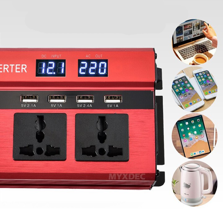 - Lưu ý: Thời gian sử dụng điện 220W phụ thuộc vào nguồn điện 12V & công suất tải, thường thì sử dụng bình acquy 12v có dung lượng cao sẽ đảm bảo thời gian sử dụng.