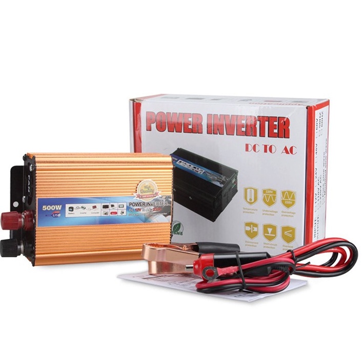 - Với bộ kích điện công suất 500W thì đáp ứng được các nhu cầu sài điện khác nhau: bóng đèn, quạt, tivi led...khi sử dụng các sản phẩm, bạn cần xem công suất của thiết bị đó hoặc tổng công suất của các thiết bị có vượt quá công suất của bộ đổi điện hay không?