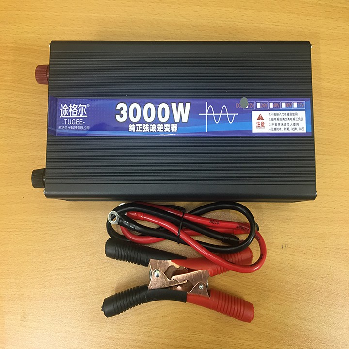 BỘ KÍCH ĐIỆN INVERTER 12V - 220V - 3000W SIN CHUẨN - CÔNG SUẤT THỰC 1500W - KẸP CÁ SẤU