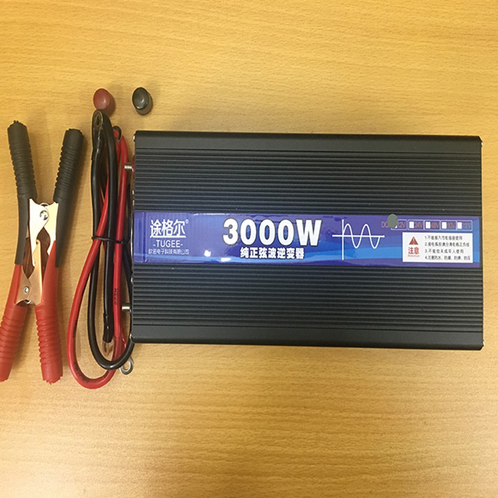 BỘ ĐỔI NGUỒN INVERTER 12V - 220V - 3000W SIN CHUẨN - CÔNG SUẤT THỰC 1500W - KẸP CÁ SẤU