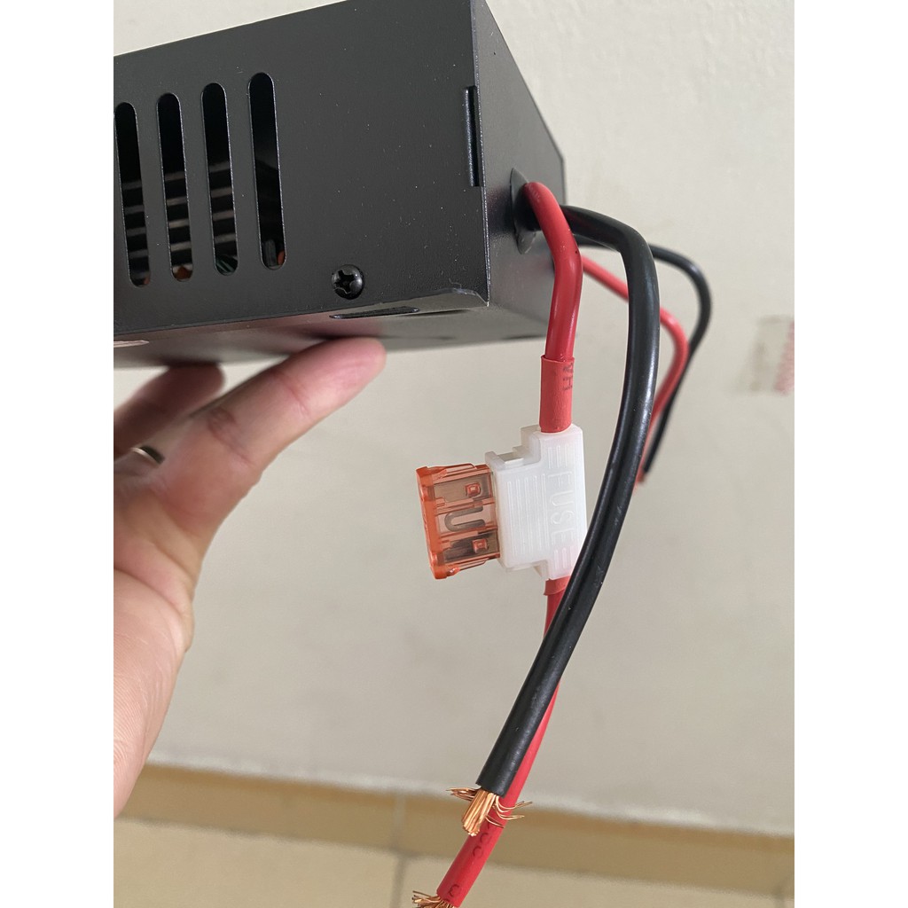 Bộ chuyển đổi Kích thước Cắm: Có 2 đầu dây vào điện 12v và 2 đầu dây ra 24v ( phân biệt âm dương màu đỏ (+) đen (-)