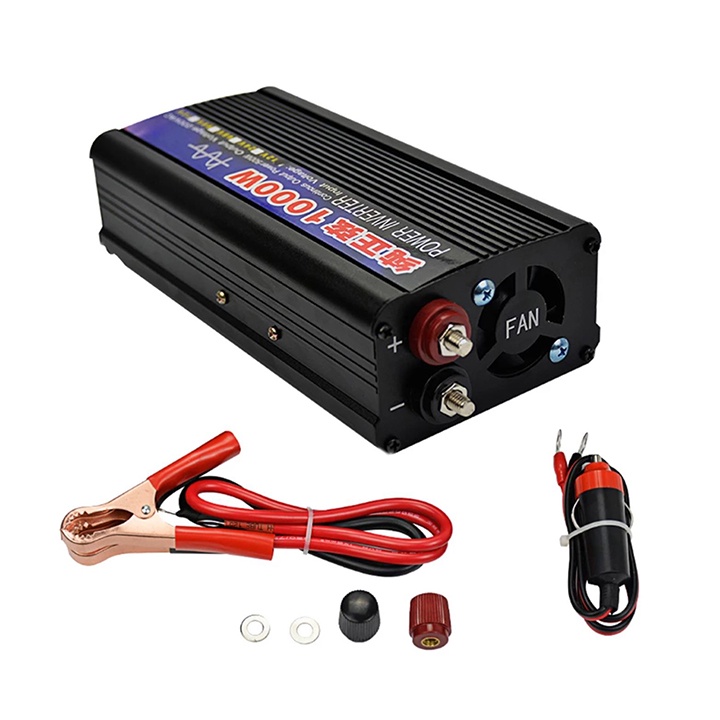 ⛵ BỘ KÍCH ĐIỆN INVERTER 24V - 220V - 1000W SIN CHUẨN - CÔNG SUẤT THỰC 750W - KẸP CÁ SẤU + TẨU DÙNG Ô TÔ
