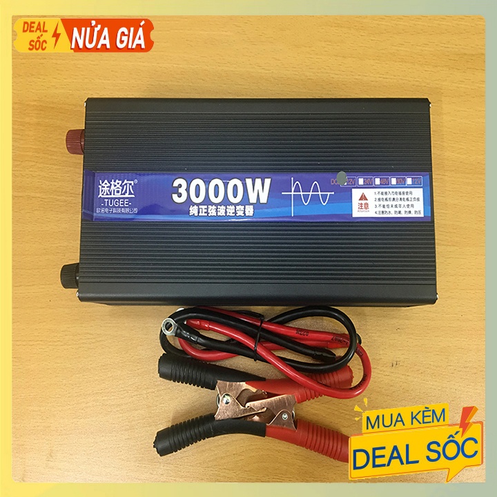 BỘ KÍCH ĐIỆN INVERTER 12V - 220V - 3000W SIN CHUẨN - CÔNG SUẤT THỰC 1500W - KẸP CÁ SẤUInverter – bộ kich điện - bộ chuyển đổi tự động dòng điện một chiều điện áp thấp 12VDC sang dòng điện xoay chiều điện áp cao 220VAC tần số 50Hz lấy nguồn từ bình acquy 12v DC dân dụng, xe máy, xe hơi.