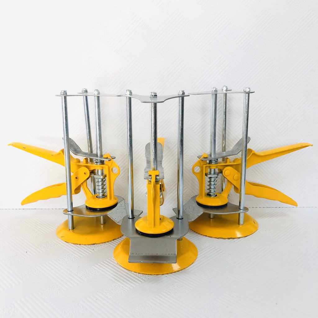 Sản phẩm lấy cốt gạch ốp tường bóp tay Với cách lấy cốt gạch truyền thống như kê kích gạch, chống gạch ốp tường thường sẽ gây ra những sai lệch trong khâu hoàn thiện nhà và mất đi tính thẩm mỹ.Những với sản phẩm lấy cos gạch ốp tường bóp tay thì chúng ta có thể hoàn toàn yên tâm,chúng ta chỉ việc đặt gạch lên gá đỡ và bóp tay đến cos mong muốn.Sản phẩm có thể đẩy cả hàng gạch lên,kích tối đa 100kg/ 1 kích