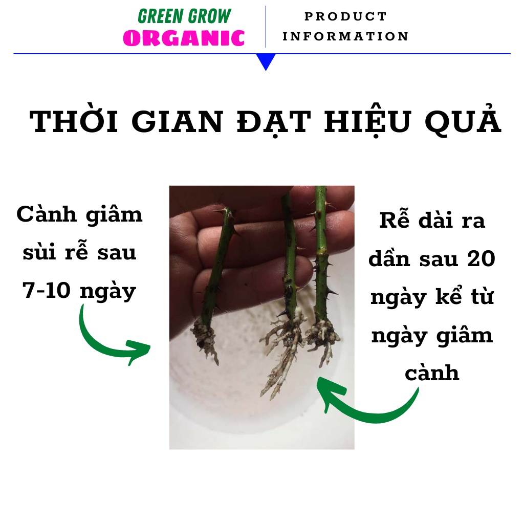 Giới thiệu Kích rễ cực mạnh Green Grow Organic dùng giâm cành Hoa Hồng, Hoa Mai, Hoa Giấy, Hoa Lan giúp ra rễ sau 7 ngày MS112