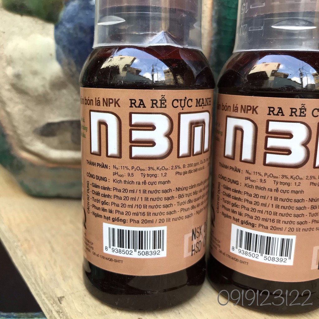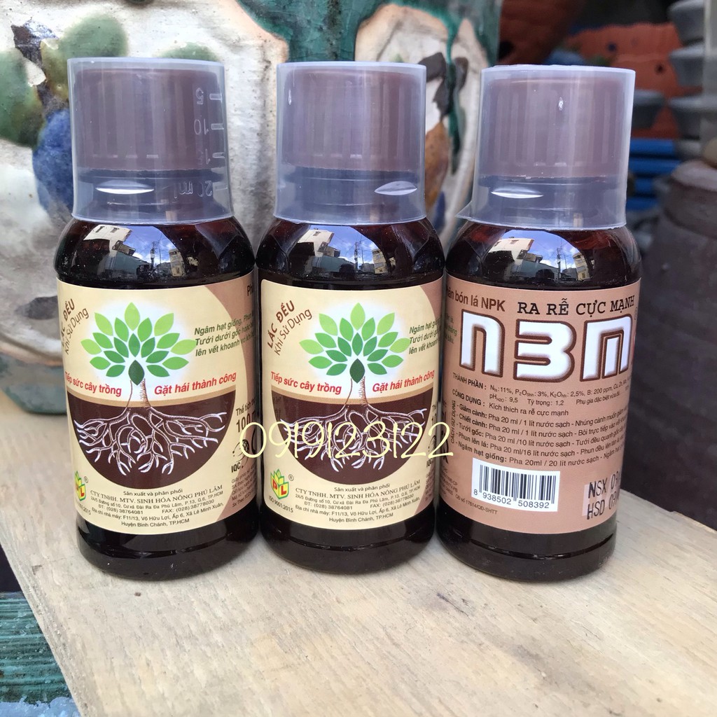 Phân bón kích thích ra rễ N3M loại Pro 100ml với các thành phần N 11%, P205 3%, K2O 2,5%, B 0,02%, Cu 0,2%, Zn 0,2%, Mn 0,2%, Fe 0,2% và phụ gia đặc biệt, có tác dụng kích thích ra rễ cây ăn trái, cây công nghiệp, vườn ươm và cây cảnh... Người sử dụng có thể tưới sản phẩm vào gốc cây để tăng cường bộ rễ, nhúng cành muốn giấm, thoa vào chỗ chiết để kích thích ra rễ.
