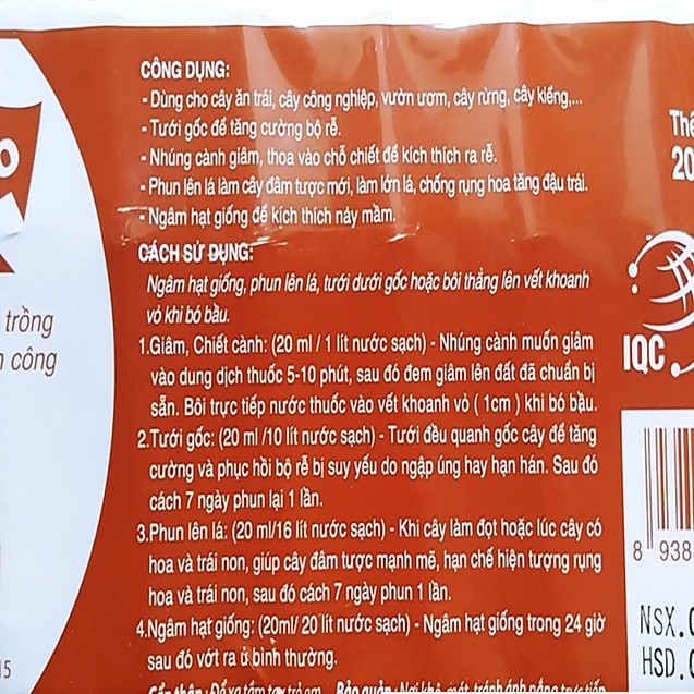 - Sử dụng trong quá trình ngâm hạt giống để hỗ trợ thúc đẩy sự xuất hiện của rễ tơ ban đầu.