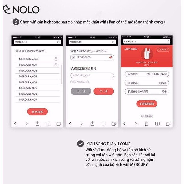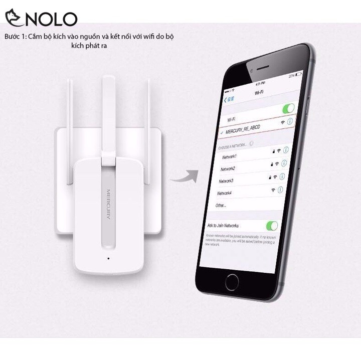 Bước 2: Dùng điện thoại bắt đến wifi tên Mercury -RE-D0..