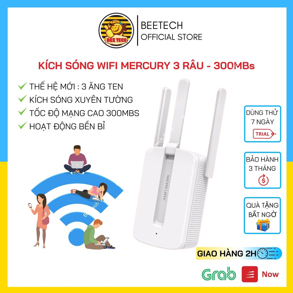 Máy tính & Laptop > Thiết Bị Mạng > Bộ Kích Wifi || Kích sóng wifi 3 râu Mercury MW31RE tốc độ 300Mbp/s - BeetechCòn hàng